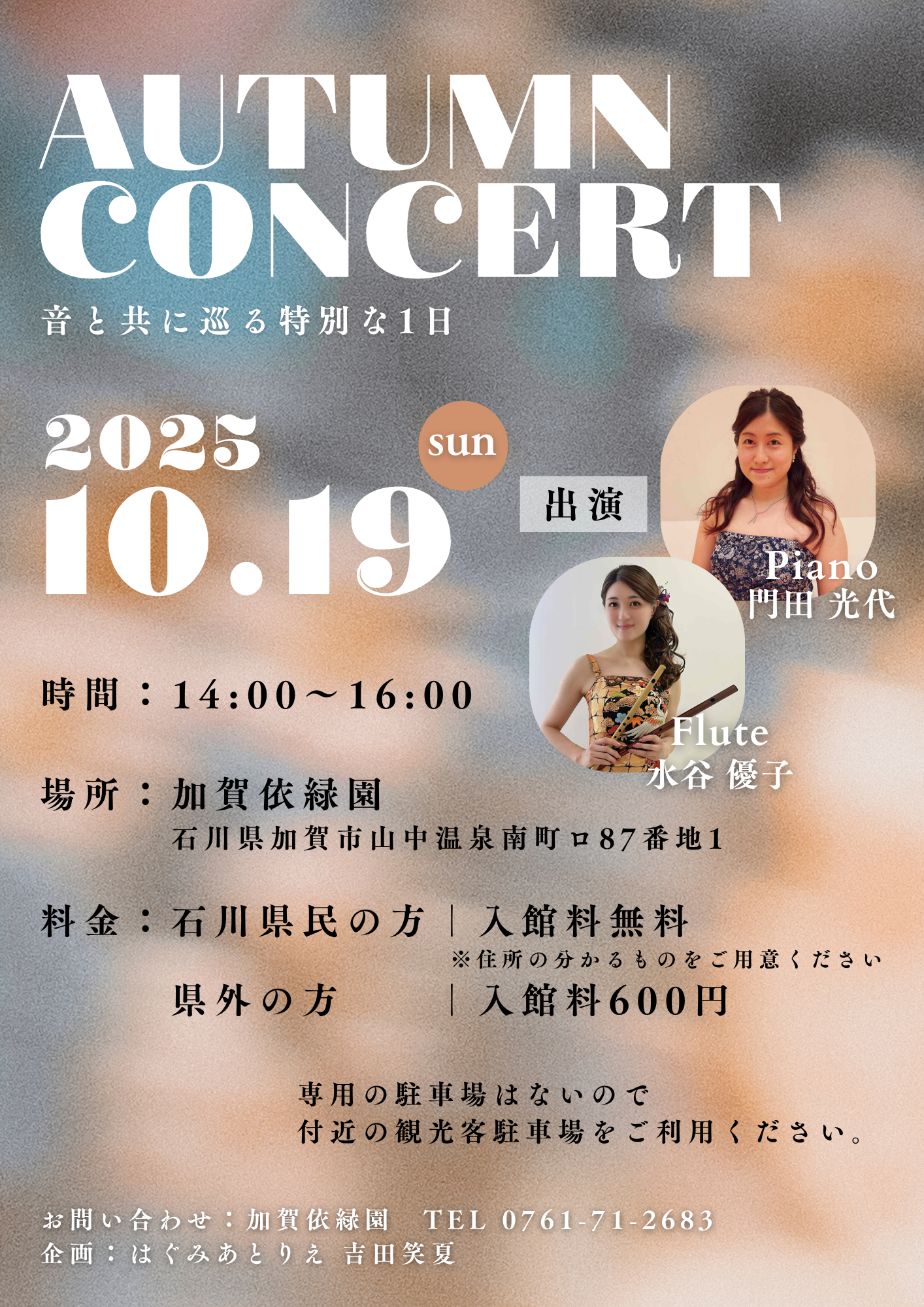 10月19日(日) いしかわ文化の日は、石川県の皆様は無料でご入館いただけます。住所のわかる身分証をお持ちになり、ぜひ、お越しください。また、当日14時より演奏会を予定しております。皆様のご来館を心よりお待ちしております。