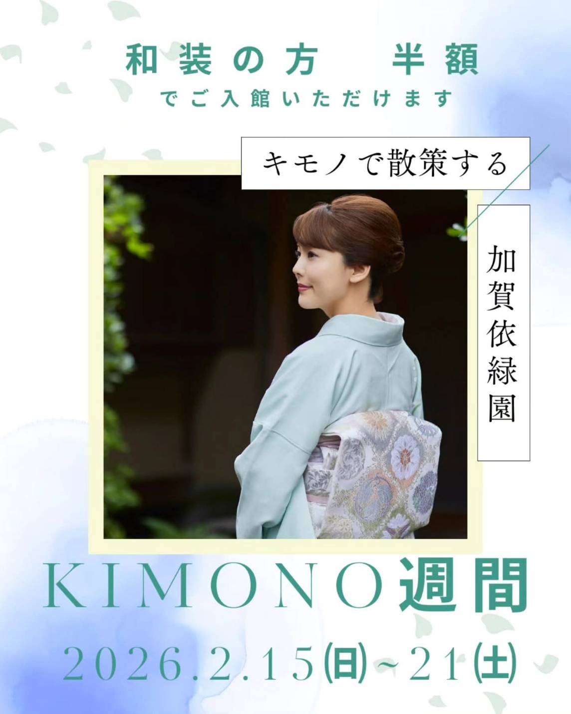 期間中は和装の方は半額でご入館いただけます。浴衣や甚平なども大歓迎でございます!