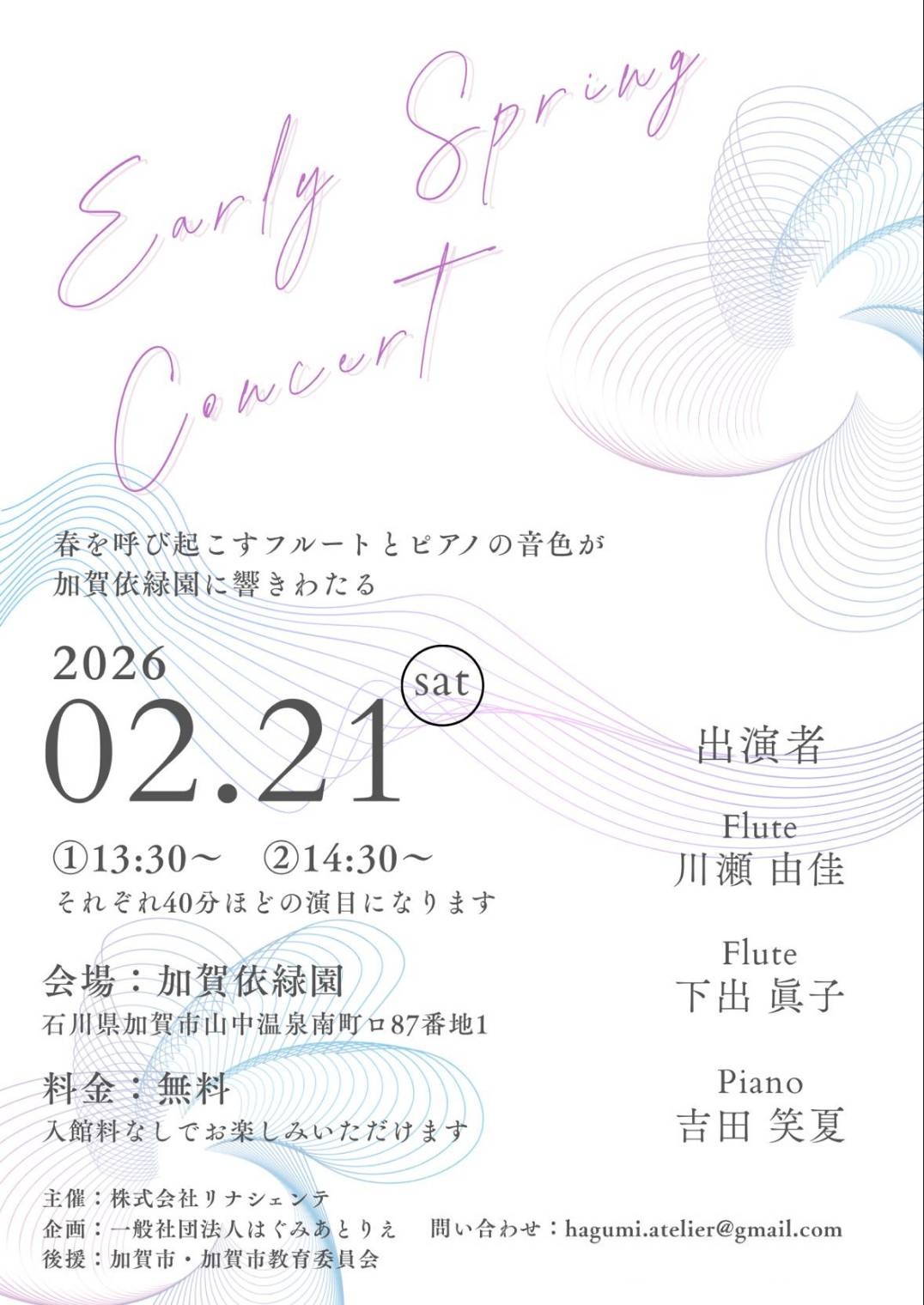 12月27日は無料入館とし、14:00より”はぐみあとりえ”の吉田笑夏さんによる演奏会を行います。衣服を纏うように音を纏い、音に包まれながら館内を巡ってみてはいかがですか?場所は、1階ラウンジです。皆様のお越しをお待ちしております。